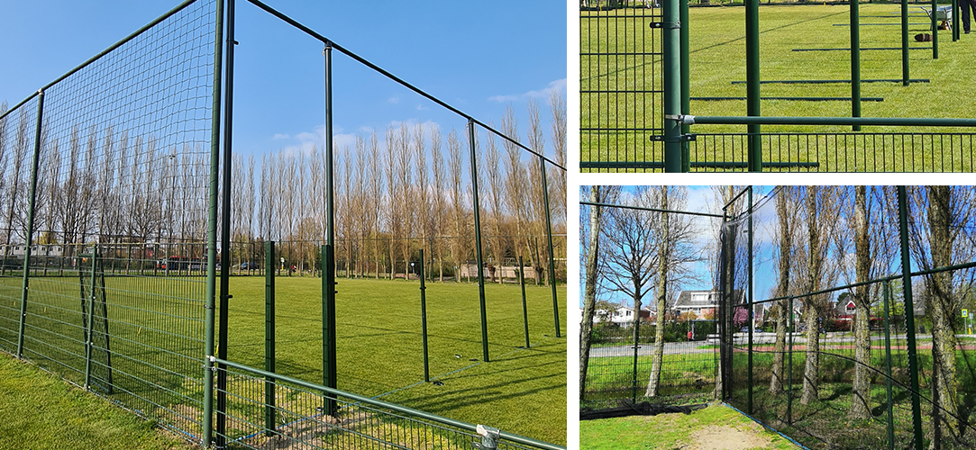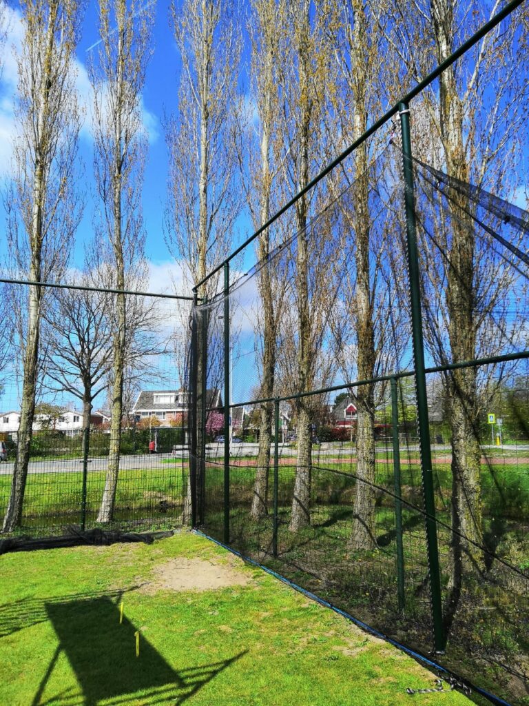 Afgelopen maandag is er begonnen met het plaatsen van de palen voor de paintballnetting. De onderkant van de palen zullen worden voorzien van stalenmatten zodat het speelveld afgesloten kan worden na gebruik. Het hele veld zal rondom worden voorzien van 5 meter hoge palen. De netting is eenvoudig op te hijsen en te laten zakken via een katrollensysteem. In het hekwerk worden twee deuren geplaatst – spelers hebben via deze deuren toegang tot het veld. Om duidelijk te zien wat het speelveld is worden er achterlijnen en zijlijnen getrokken.